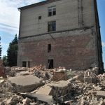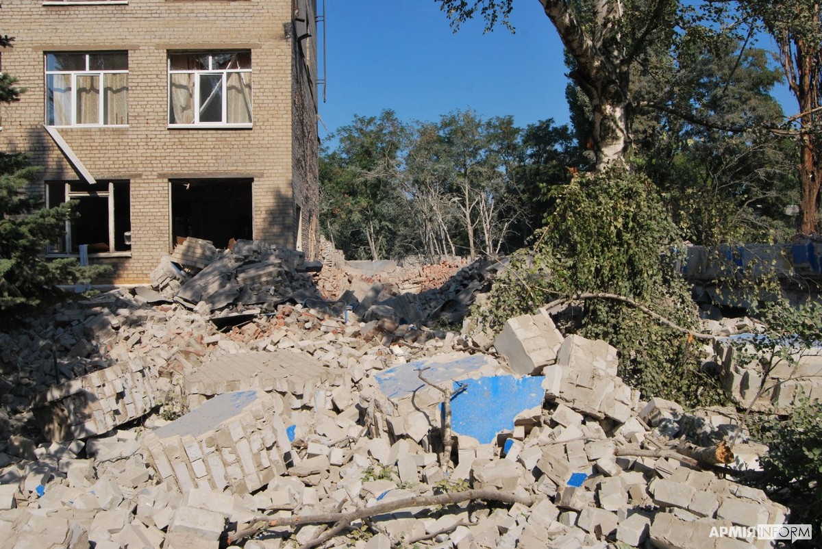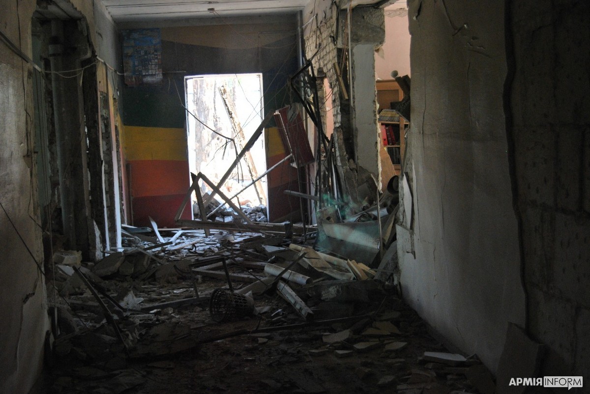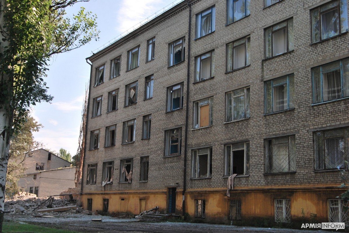 — Усі вікна вибиті, — розповідає він. — У нас тут два корпуси — їх обидва накрило, весь фасад пошкоджений! Та й всередині сильні пошкодження. Перший корпус, повністю площа «накрита», другий корпус теж — весь фасад «вилетів». Слава Богу, люди не постраждали.