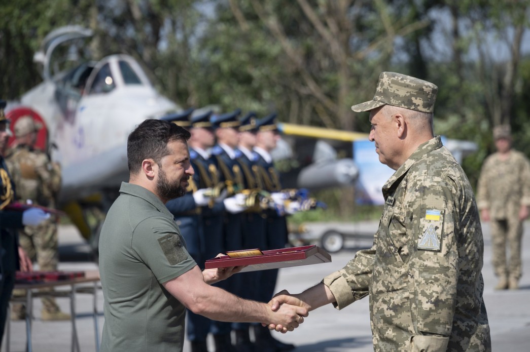Президент України Володимир Зеленський узяв участь у заходах з нагоди Дня Повітряних сил ЗСУ та вручив високі державні нагороди, почесні відзнаки й бойові прапори військовим частинам.