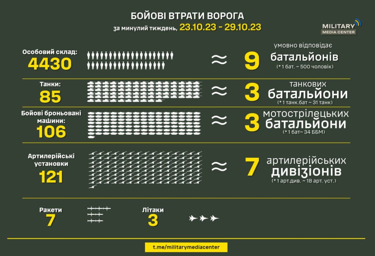 Сили оборони України за минулий тиждень, з 23.10 по 29.10, знищили: