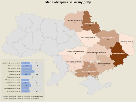 Війська росармії атакували 147 населених пунктів та 107 об’єктів інфраструктури з різних видів озброєння. Зокрема, з мінометів, танків, артилерії, РСЗВ, БПЛА, ЗРК та тактичної авіації.
