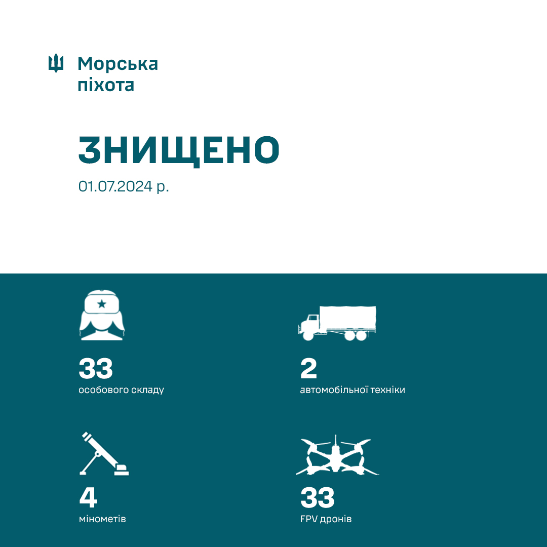 Минулої доби, 01 липня, морські піхотинці знищили:
