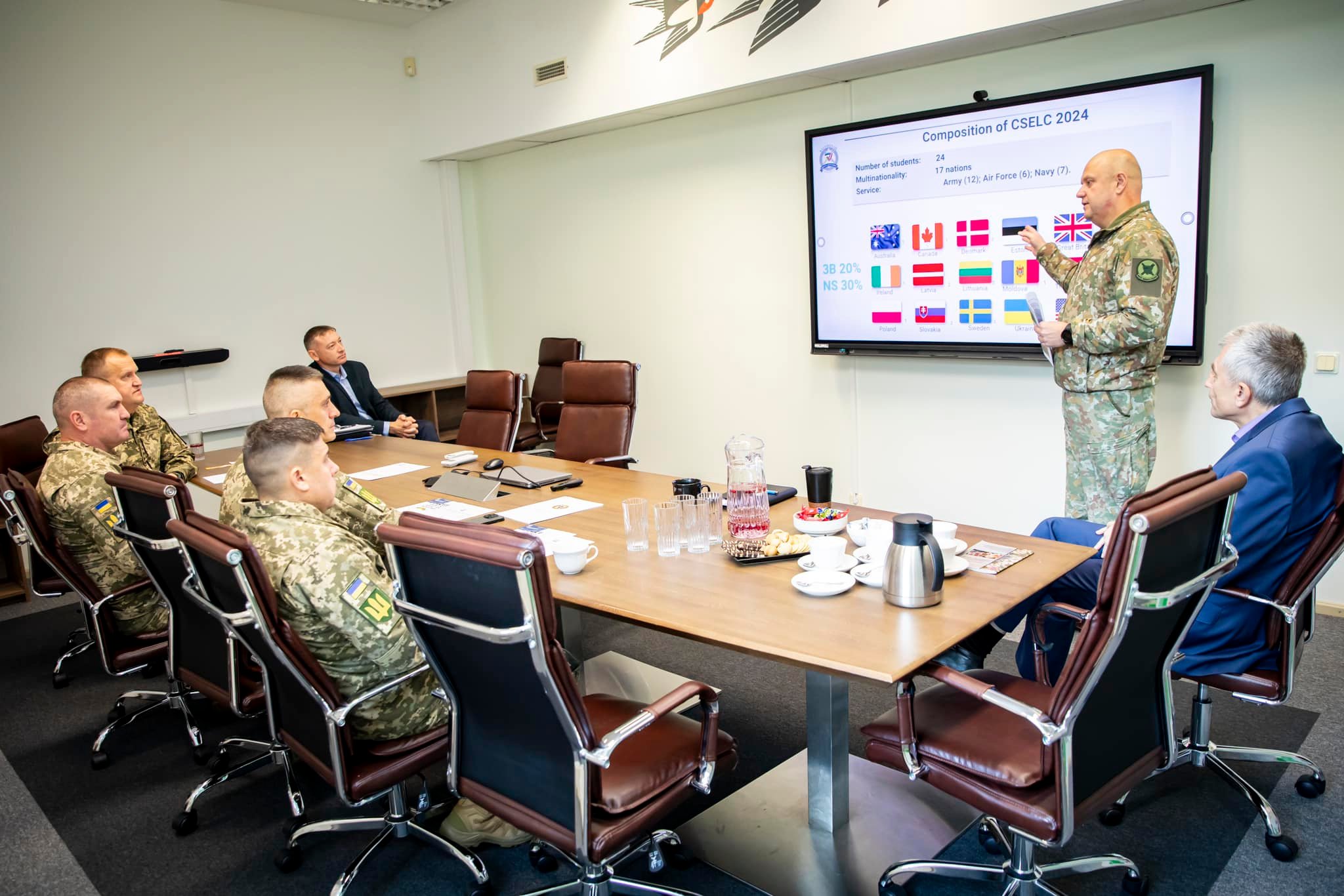 Під час візиту офіцери ВІКНУ провели презентації та обговорення з керівним та викладацьким складом коледжу, зосередивши увагу на питаннях лідерства, бойових дій та ролі Ліги оборони Естонії в системі національної оборони.