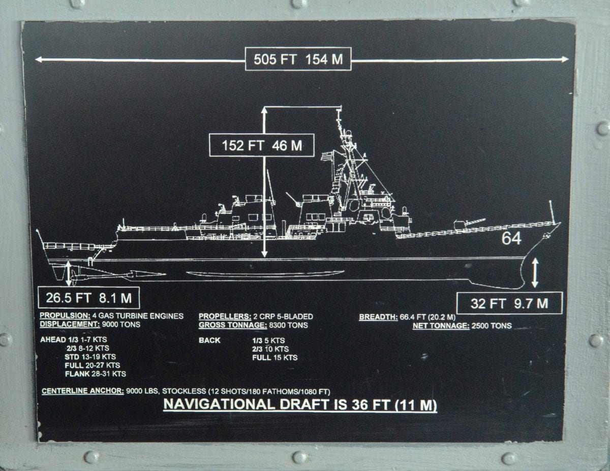 Довідка: есмінець «Карні» відноситься до класу «Арлі Берк». Його довжина 154 метри, ширина 20 метрів, осадка близько 10 метрів. Повна водотоннажність близько 9 тисяч тонн. Чотири газотурбінні установки сумарною потужністю 108 тисяч кінських сил розганяють корабель до 32 вузлів. На борту есмінця 90 пускових установок для ракет «Томагавк», «АСРОК» і «Стандарт-2», а також дві пускові установки ракет «Гарпун». Артилерійське озброєння включає 127-мм гармату «Mark-45», а також два шестиствольних зенітних автомати «Фаланкс». Екіпаж есмінця «Карні» складають 337 офіцерів і моряків.