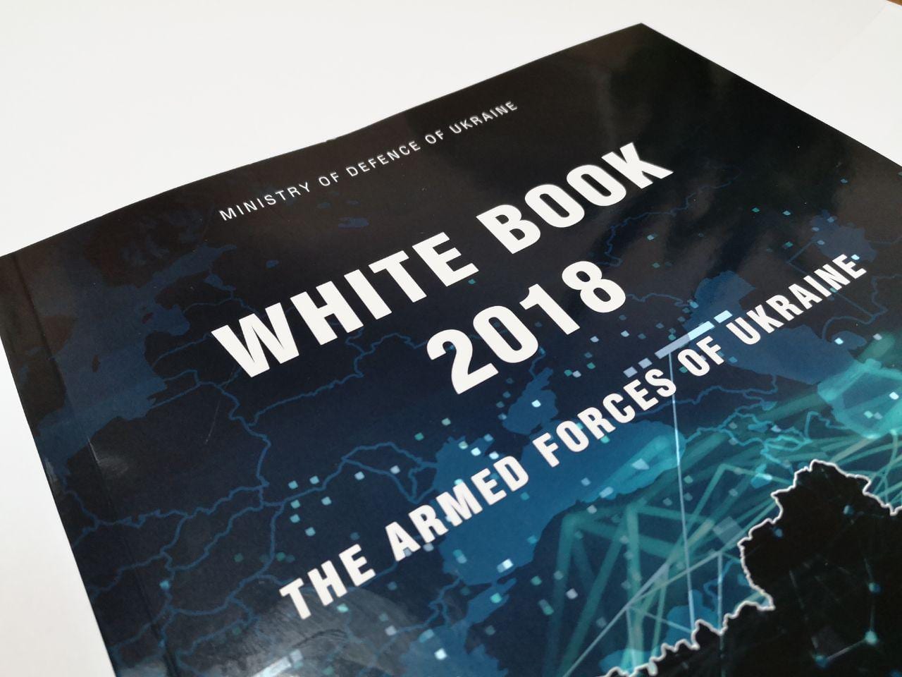 Довідка. Видання «Біла книга-2018. Збройні Сили України» присвячене питанням реформування Збройних Сил України. У виданні висвітлюються поточний стан Збройних Сил та головні напрями подальшого військового будівництва. Матеріали щорічника призначені для цивільних і військових фахівців у галузі військового будівництва, оборонної політики та політики безпеки, журналістів, викладачів і студентів профільних вузів та факультетів, а також усіх, хто цікавиться станом і напрямами розвитку Збройних Сил України. Вперше видання щорічника побачило світ у 2005 році і було присвячене проблемам реформування ЗС України.