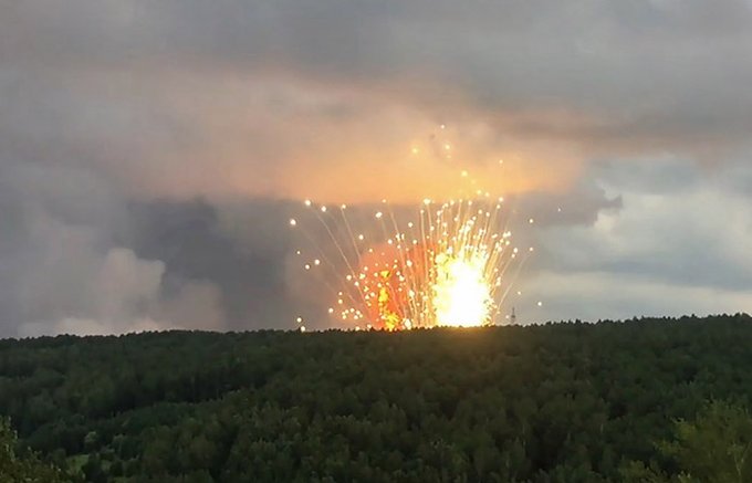 5 серпня в районі міста Ачинськ Красноярського краю РФ на території в/ч 74008 загорівся склад боєприпасів, на якому зберігалося 40 тисяч снарядів калібру 125 та 152 мм. Відомий на весь світ після скандалу навколо пожеж у сибірській тайзі губернатор Красноярського краю Олександр Усс, який байдуже спостерігав, як горять «легені» планети й нічого робив, аби ліквідувати катастрофу, і на цей раз спокійно заявив: ситуація з пожежею на артилерійському складі «під контролем».