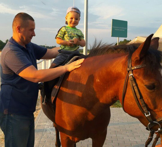 – Хоч ми і перебували в релігійній общині, проте жили як прості гості, нам навіть дозволили вивісити прапор України на балконі, – розповідає майор Юрій Швець, який має дві ротації в район бойових дій у складі пошукової групи проєкту «Евакуація-200». – Акцент було зроблено на психологічне відновлення за допомогою іпотерапії. Наші кімнати були розташовані прямо над стайнею. Спілкування з тваринами заспокоює, розслаблює і відволікає від буденних проблем. Проте найбільш позитивний результат, як для мене, це те, що мій старший син буквально за три дні навчився вправно триматися у сідлі та їздив верхи, як справжній козак. А у меншого залишилося безліч позитивних емоцій. На конях він ще не катався, бо йому лише два рочки, проте йому дуже подобалося їх гладити. І, звісно, жінка трохи відпочила від важкої долі дружини офіцера.