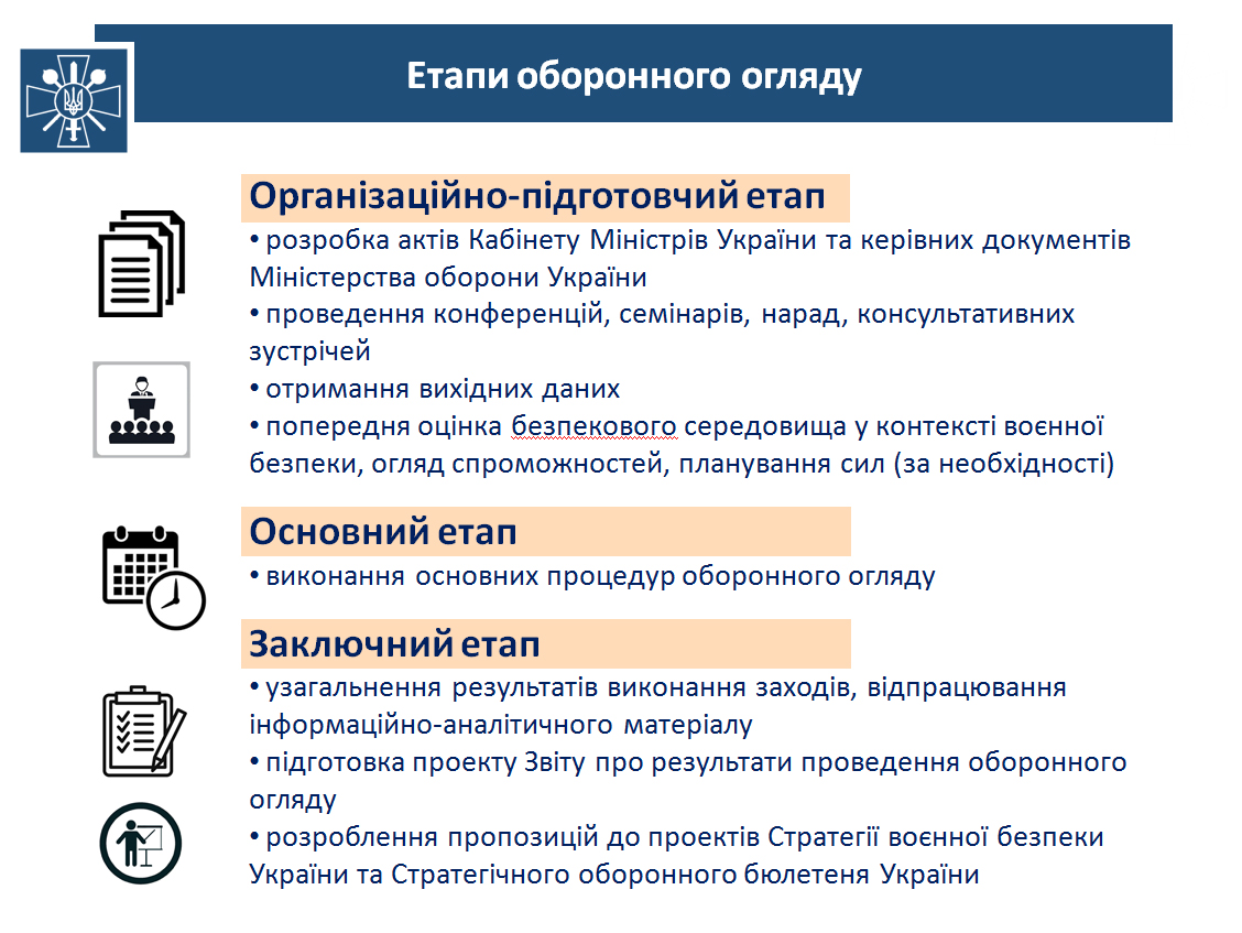 — В ході оборонного огляду завершується проведення оцінки безпекового середовища та розпочато етап планування спроможностей.
