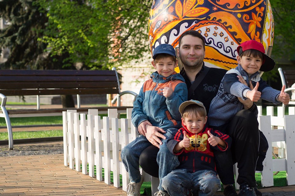 «У важкі хвилини, під час найсильніших обстрілів, коли життя висіло на волосині, чітко визначив для себе, що більше всього на світі хочу повноцінну сім’ю з дітками. Це дуже особиста історія. Спочатку ми з дружиною готувались до одного сина чи доньки, але, коли почули про непросту долю трьох братів, вже не могли пройти повз. Ми знайшли синочків у маленькому бідному дитячому будинку на Одещині. Так сталось, що ми є вже третіми батьками у цих братів, та вірю, що саме нам вдасться виховати їх хорошими людьми й справжніми патріотами. Як це зробити? Головний рецепт простий – любити їх. Коли вони тільки прийшли в нашу сім’ю, то не знали, що таке ялинка, кольорові олівці, мандарини, усіх чужих тіток і дядьків називали татками і мамами… Нині це зовсім інші діти. Більшого щастя, ніж вони, я не знаю…»