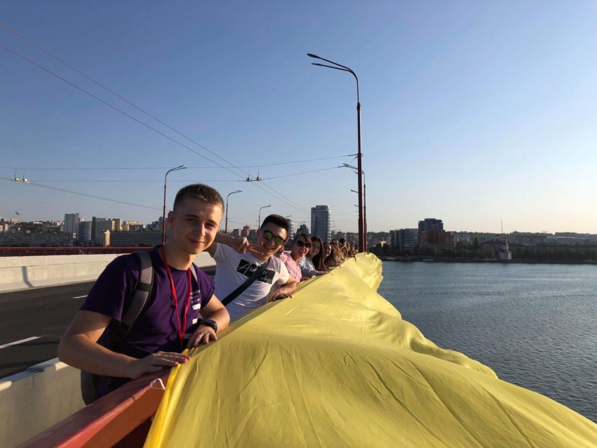 Акцію провели на Центральному мосту, вздовж якого близько 100 юнаків і дівчат, а також небайдужі містяни, розгорнули стометровий прапор України. Про це повідомили у Дніпровській міській раді.