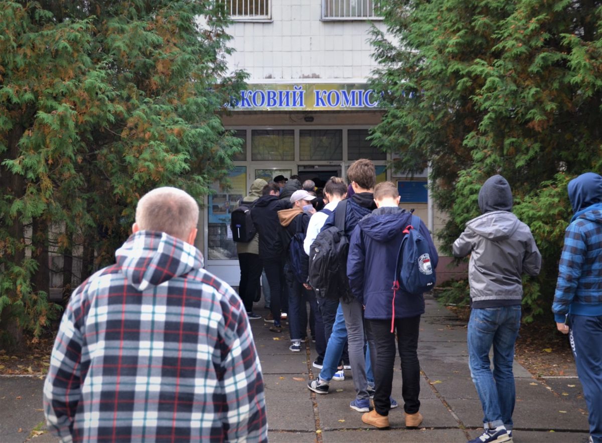 На вході до військкомату довжелезна черга юнаків налаштовувала на оптимістичний лад: нарешті призовники штурмують військкомат, аби потрапити в армію. Як виявилося згодом, то були здебільшого студенти навчальних закладів, які принесли довідки про навчання у вишах, а відтак не підлягають призову. Втім, це теж позитивний факт, адже є й такі, хто не поспішає відповідну довідку занести до військового комісаріату.