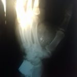 — Під час бою він стріляв із підствольного гранатомета, — розповідає лікар. — Шість пострілів виконав нормально, а сьомий якось не так вийшов із каналу ствола, в результаті чого боєць зазнав поранення. Знімок показав наявність сторонніх тіл — осколків.