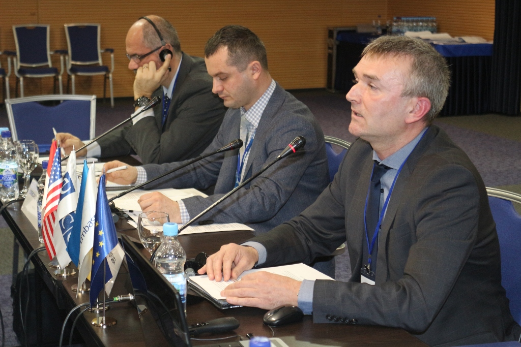 У своїй доповіді він зазначив, що за експертними оцінками – Україні необхідно не менше ніж 20 років, щоб розмінувати території, які забруднені вибухонебезпечними предметами, і це за умови сталого безперебійного фінансування. Другою масштабною проблемою є техногенні загрози – у зоні ведення бойових дій знаходиться понад півсотні об’єктів, деякі з яких несуть безпосередню загрозу понад мільйону українців. Моніторинг екологічної ситуації вже показує суттєве погіршення якості питної води у Донецькому басейні. Якщо ситуацію не виправити, то наслідки затоплення шахт і промислових виробок відіб’ються на сусідніх регіонах та Азовському морі.