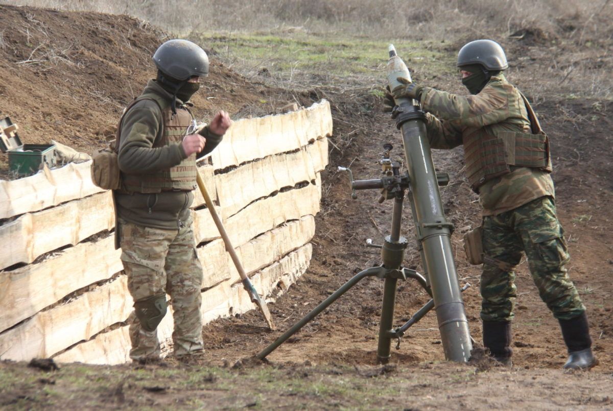 На одному з полігонів бойової підготовки Приазов’я підрозділи артилерії підтримки Оперативно-тактичного угруповання «Схід» виконують вогневі завдання і вдосконалюють майстерність під час тактико-спеціальних навчань з бойовою стрільбою.