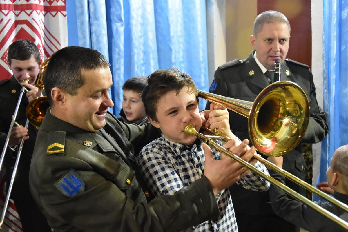 Але цього дня у військових то був не єдиний концерт. Завітали українські воїни й до Маріупольської загальноосвітньої школи-інтернату № 2. Тут вони теж долучили вихованців до своєї творчості та гри на музикальних інструментах.