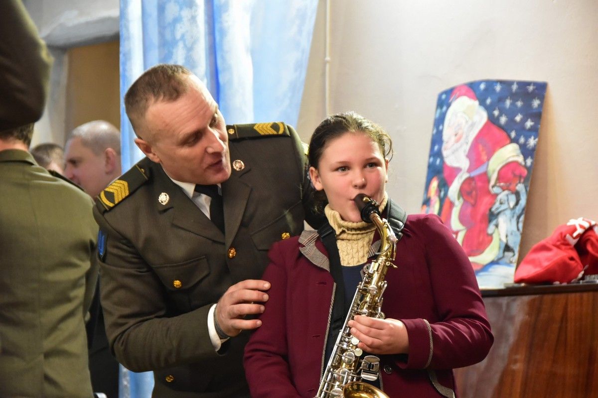 Військовослужбовці також подарували дітям солодощі, фрукти та іграшки. Організували проведення конкурсів та ігор, у яких діти брали активну участь. Вихованці школи-інтернату із задоволенням спілкувались з гостями, читали вірші, співали пісні. Вчилися грати на саксофоні та трубі.