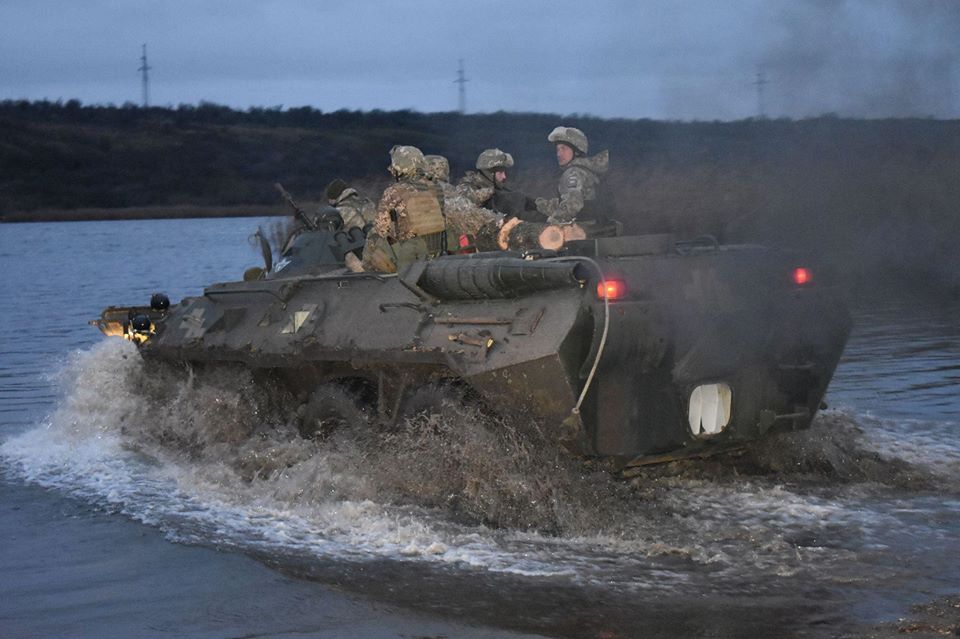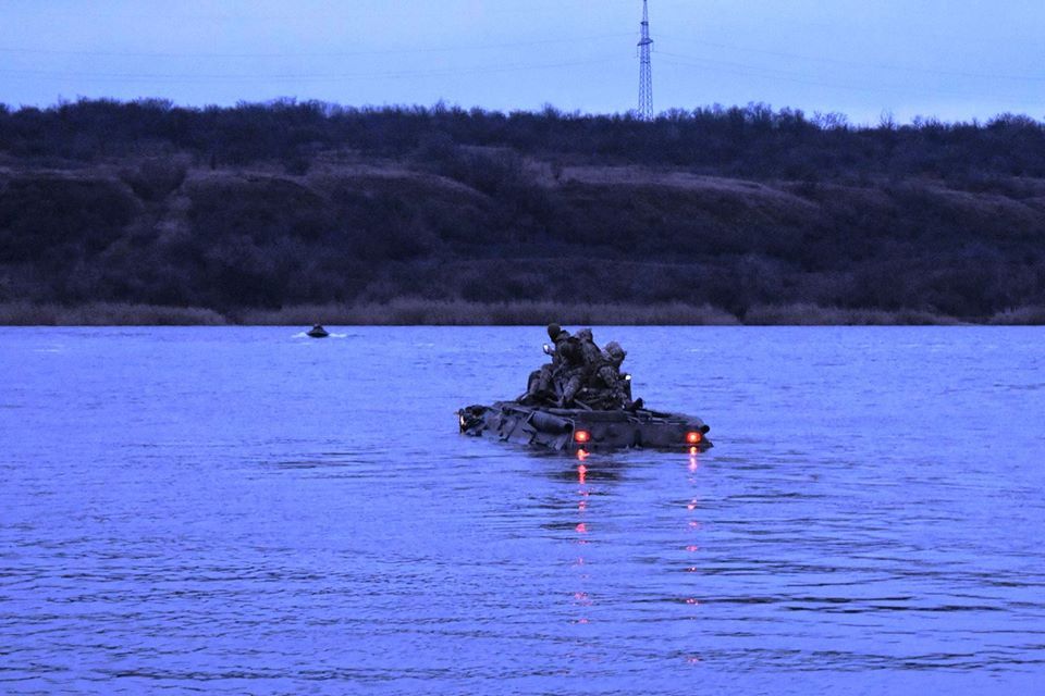 Під час практичного етапу за рішенням командира визначені підрозділи здійснили багатокілометровий марш з подоланням водної перешкоди на штатній броньованій техніці.