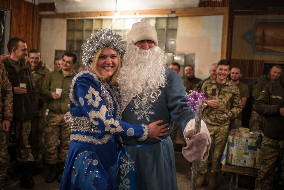 Для тих же, хто лишився на фронті, атмосферу домашнього свята, наскільки це було можливо в той непростий час, створювали волонтери, каравани яких змінювали один одного аж до закінчення різдвяних свят. Вони везли хлопцям, окрім смаколиків, тепловізори, тактичне спорядження, талісмани від діточок, новинки сучасної української літератури. Майже на кожній позиції воїни намагалися встановити ялинки, прикрашені як сувенірами з «великої землі», так і гільзами, кулеметними стрічками тощо.