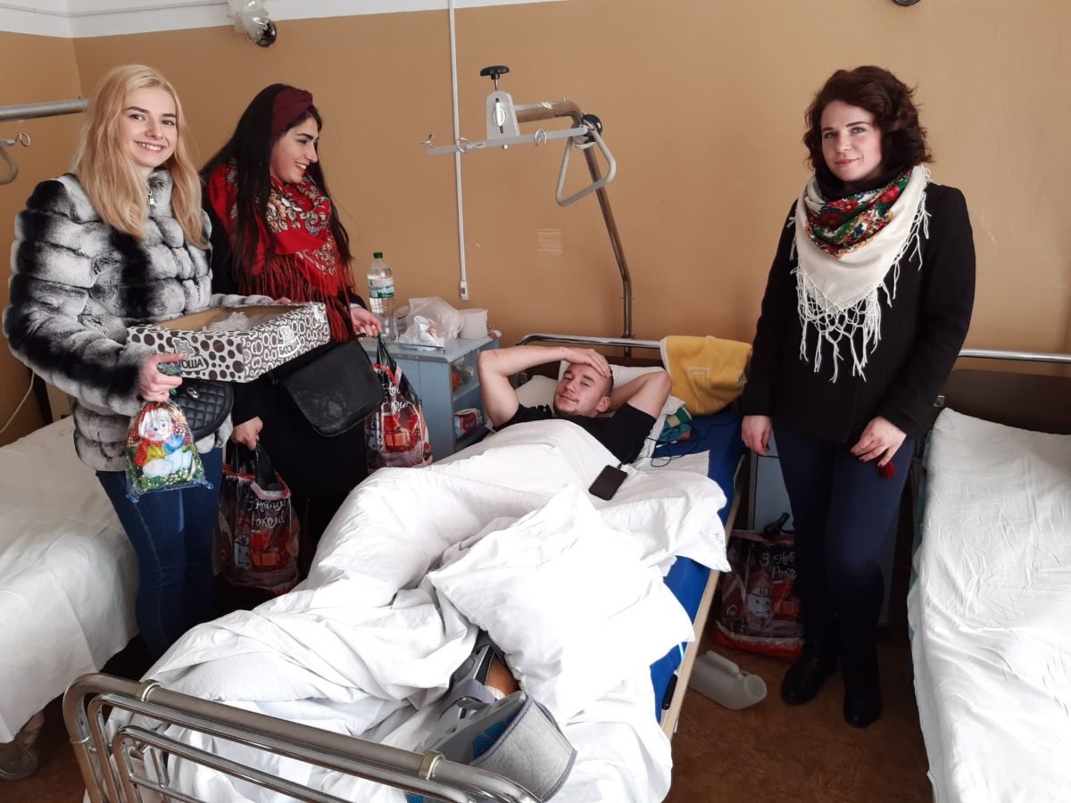 Із 2014-го року місцева громада морально та матеріально підтримує наших вояків, що знаходяться на лікуванні, зокрема, у Військово-медичному клінічному центрі Західного регіону. Ось і цього разу, напередодні Різдва Христового, добродії з Буського району через своїх представників, а саме: начальника відділу культури та туризму Буської районної державної адміністрації Людмилу Ціхоцьку, директора Народного дому села Полоничі Едуарда Марциняка, членькинь молодіжної громадської організації «Шлях до змін» Ольги Мазур, Світлани Дідух та Юліани Нижник – завітали до шпиталю аби теплим словом, обіймами і подарунками подякувати військовим, які ціною свого здоров’я бережуть мир усіх українців.