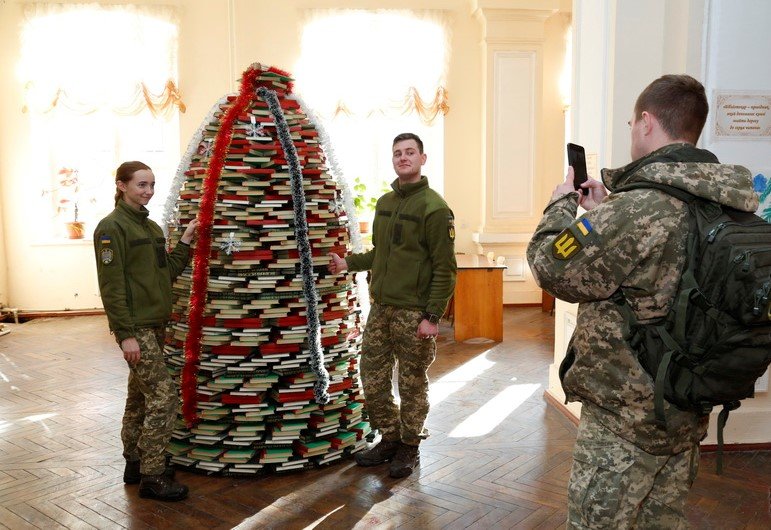 У Військовій академії (м. Одеса) спеціально до Різдвяних і Новорічних свят виготовили та встановили незвичайну ялинку. Її головна особливість — вона повністю складена з книг.