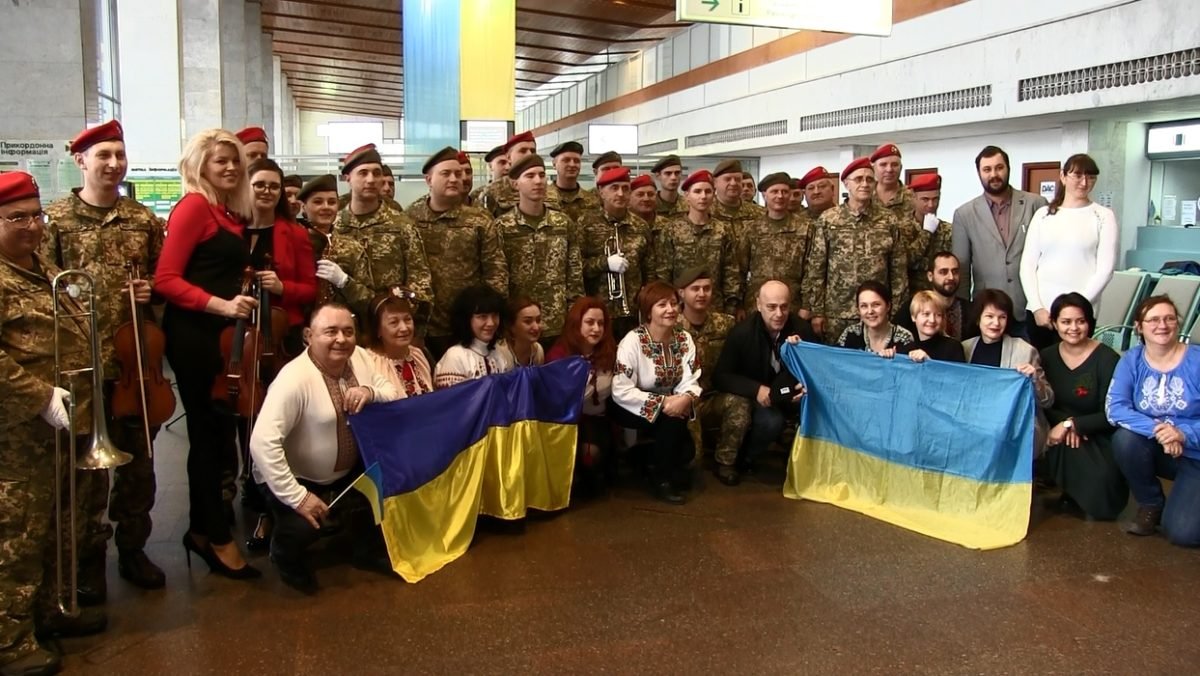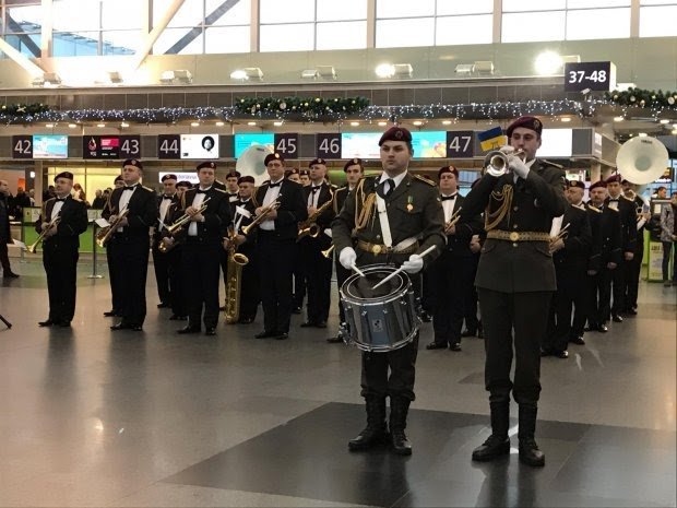 Сьогодні, 20 січня, на честь українських «кіборгів» — оборонців летовища, Національний президентський оркестр та хор Ансамблю пісні і танцю ЗС України дали концерт в терміналі Міжнародного аеропорту «Бориспіль».