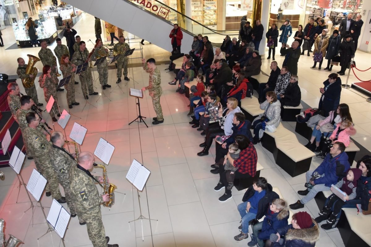 Оркестр привернув увагу всіх відвідувачів торговельного центру, серед яких було багато дітей.