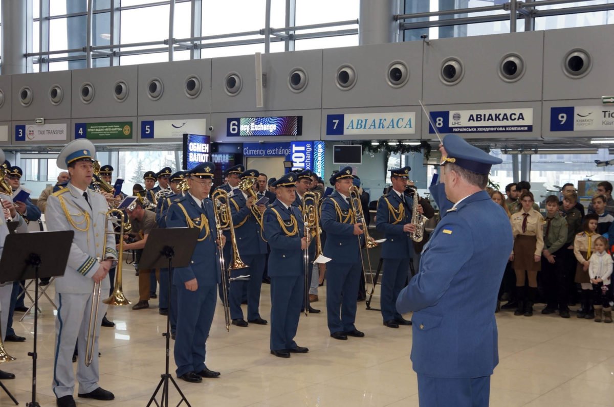 Із сім’єю прийшов до Міжнародного аеропорту «Харків» викладач Харківського національного університету Повітряних Сил імені Івана Кожедуба майор Борис Рябуха, аби послухати гру музикантів зведеного оркестру місцевого гарнізону, які вшанували подвиги «кіборгів», що протягом усіх 242-х днів захищали Донецький аеропорт.