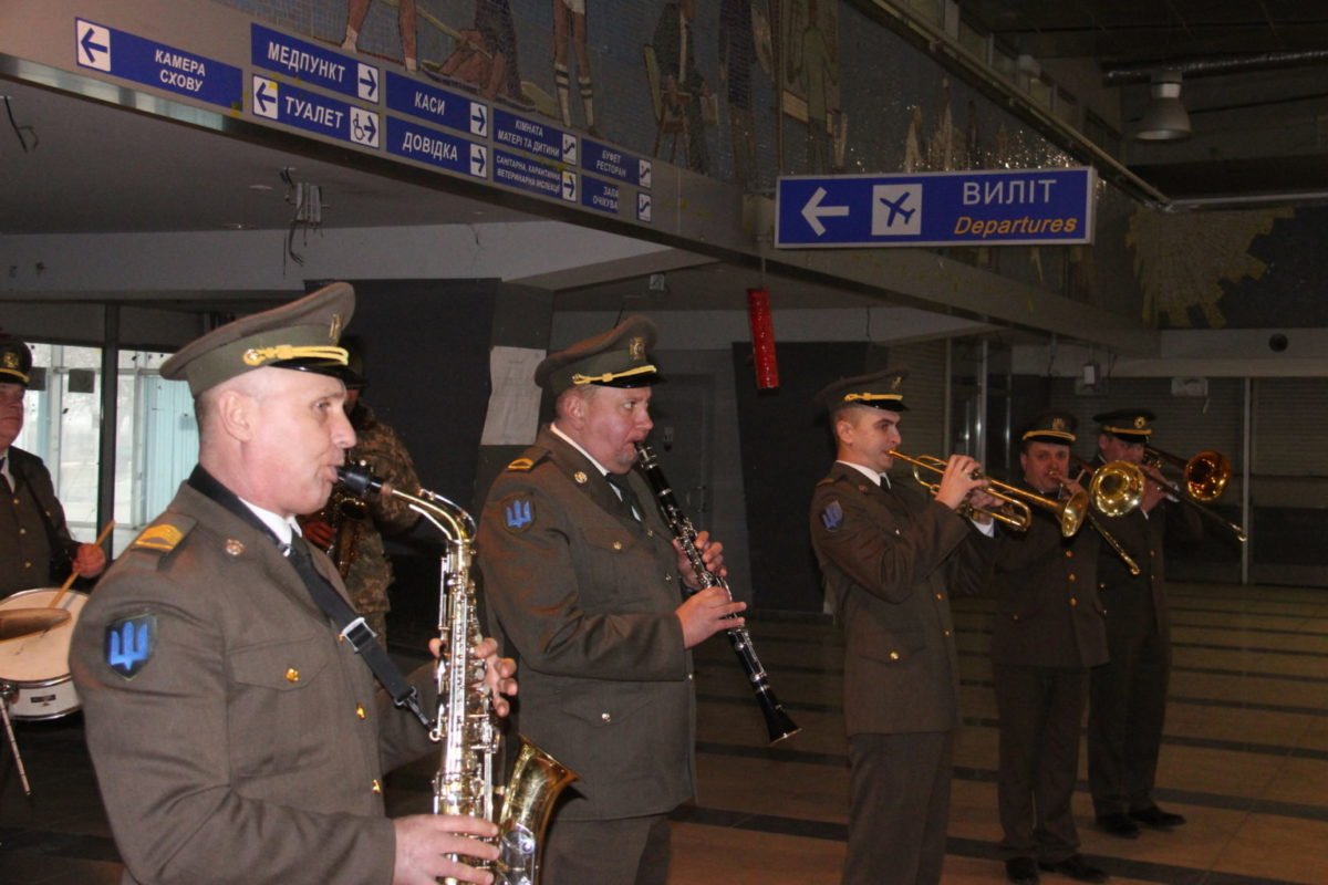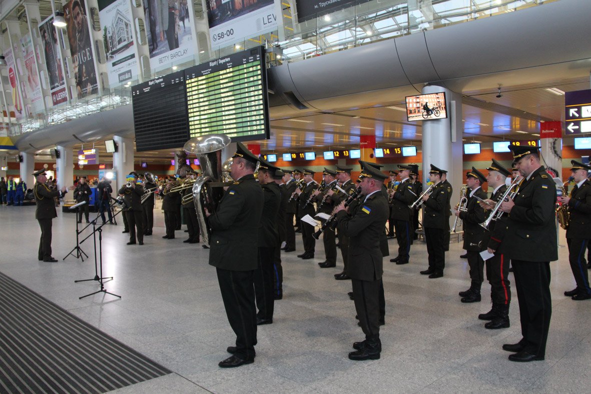 Львівський міжнародний аеропорт імені Данила Галицького теж приєднався до всеукраїнської акції на честь п’ятої річниці 242-денної героїчної оборони аеропорту «Донецьк» українськими воїнами, яких народ за їхні незламність і мужність назвав кіборгами. Саме на їхню честь тут, в терміналі «А», виступив зведений військовий оркестр, до складу якого увійшли музичні колективи: Національної академії сухопутних військ імені гетьмана Петра Сагайдачного під керівництвом диригента підполковника Богдан Катриняка, 80-ї окремої десантно-штурмової бригади та 2-ї Галицької бригади Західного оперативно-територіального об’єднання Національної гвардії України під керівництвом диригента Романа Вовка.