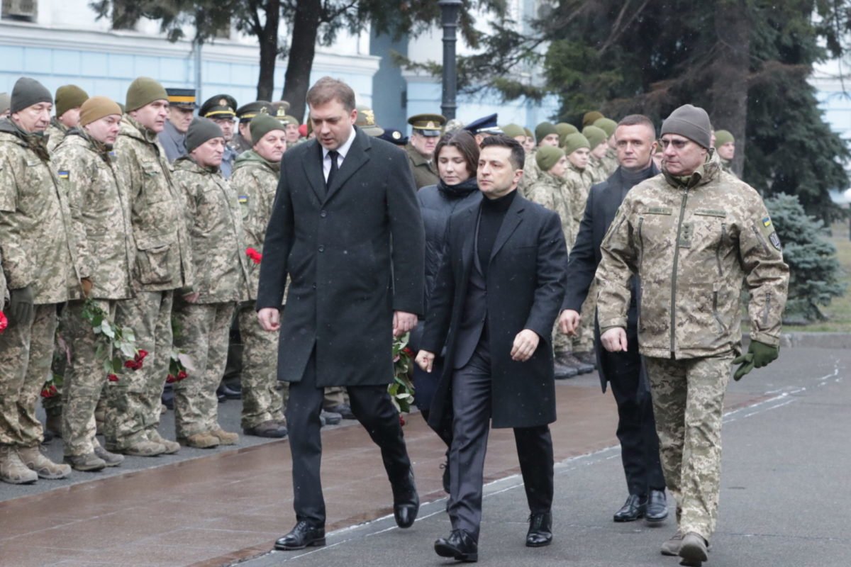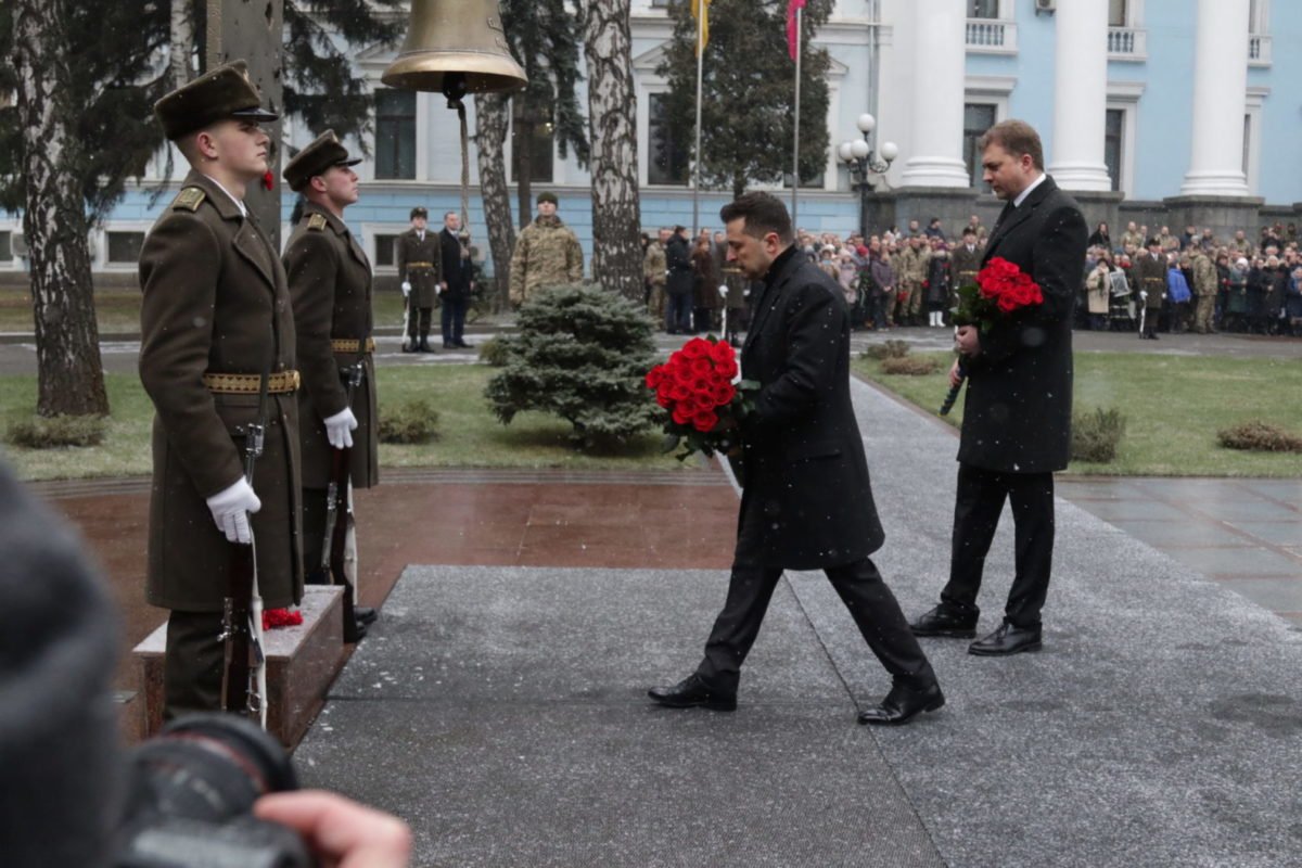 Покласти квіти до Стели Пам’яті прийшли Президент України Володимир Зеленський, Міністр оборони України Андрій Загороднюк, офіцери і працівники структурних підрозділів Міноборони й Генерального штабу ЗСУ, військові, курсанти та ліцеїсти, школярі. На церемонії вшанування були присутні рідні та близькі полеглих героїв, а також їхні бойові побратими.