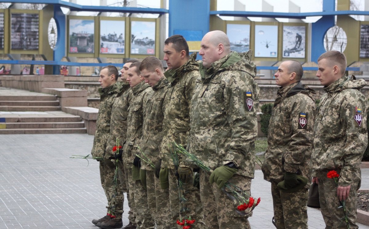 На площі Соборна, окрім військових, до марафону «Доба пам’яті» приєднались волонтери, ветерани та небайдужі жителі міста, аби вшанувати подвиг героїв Донецького летовища, які самовіддано боронили передовий фортпост держави.