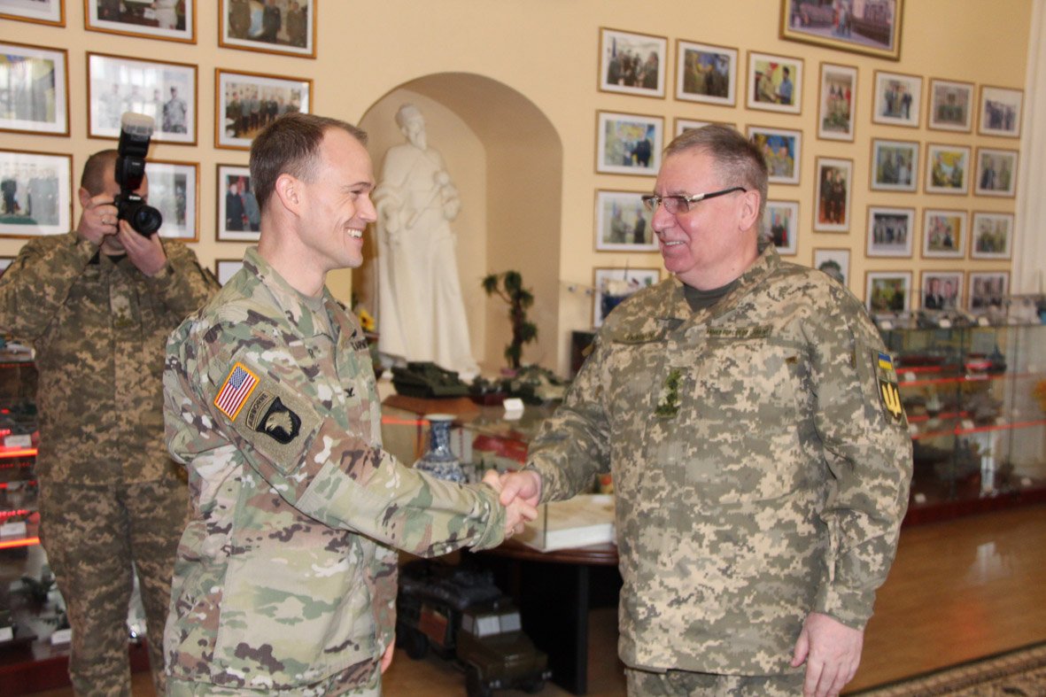 Начальник Національної академії сухопутних військ генерал-лейтенант Павло Ткачук ознайомив американських військових з історією вишу, особливостями освітнього процесу в закладі, а також відповів на численні запитання гостей.