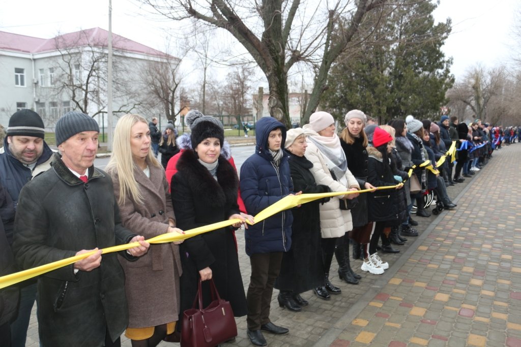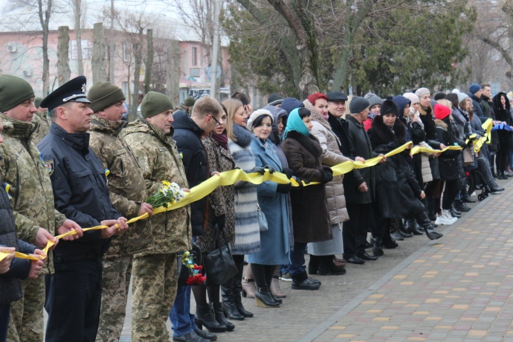 У цей день присутні долучилися до міської акції «Ланцюг Єднання». Як символ єднання присутні тримали в руках синьо-жовту стрічку завдовжки близько 300 метрів та утворили живий ланцюг у центрі міста.