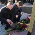 Під ревіння сирен, всі присутні вшанували пам’ять про загиблих хвилиною мовчання, після чого поклали квіти до пам’ятного знаку.
