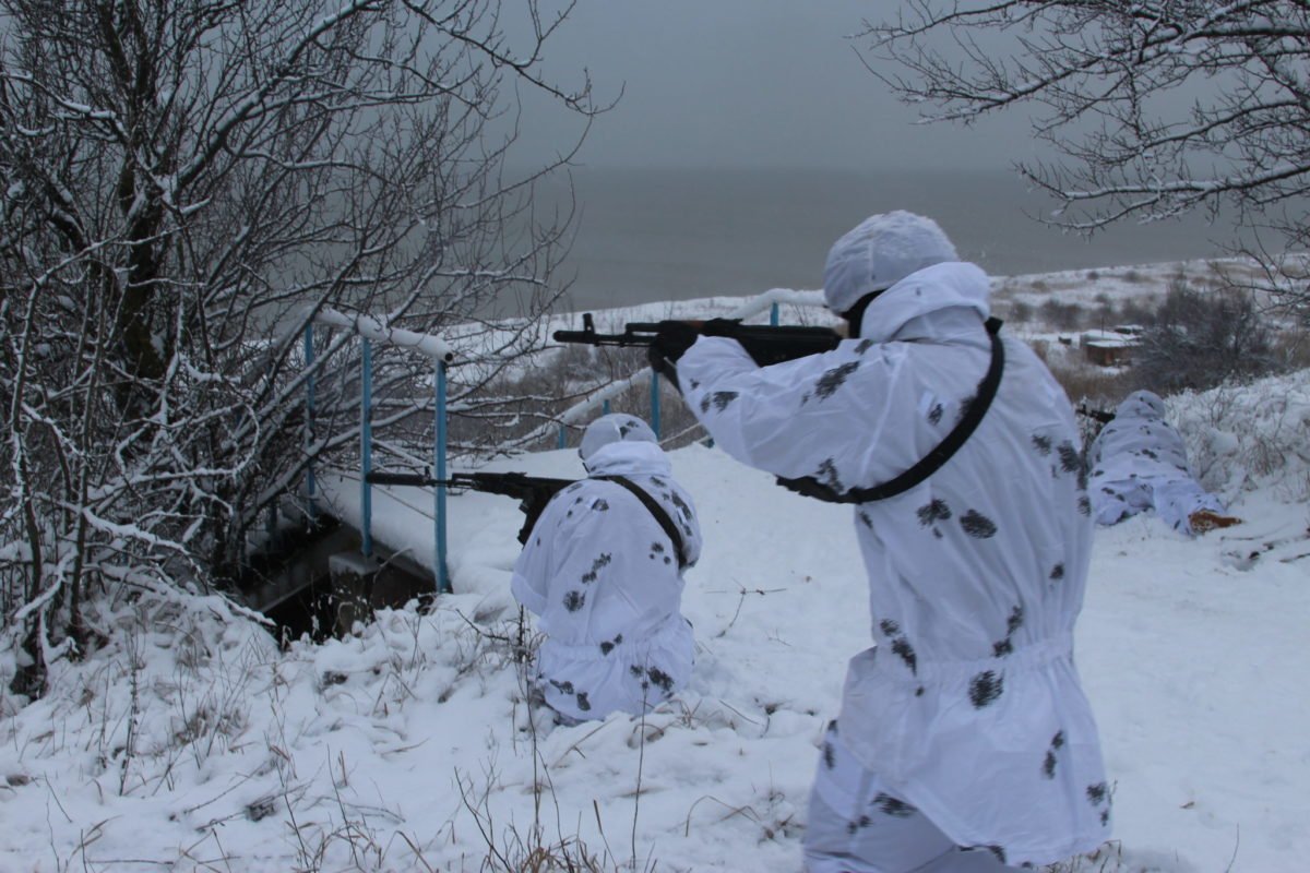 Військовослужбовці однієї з гірсько-штурмових бригад, що боронять українську землю на узбережжі Азовського моря, провели тренування з відбиття нападу десанту противника з моря та диверсійно-розвідувальних груп на суходолі. Досвідчені бійці, за плечима яких не один рік війни, відточують навички й передають досвід молодшим колегам, для яких це відрядження до району проведення ООС – перше. Утім, таких небагато…