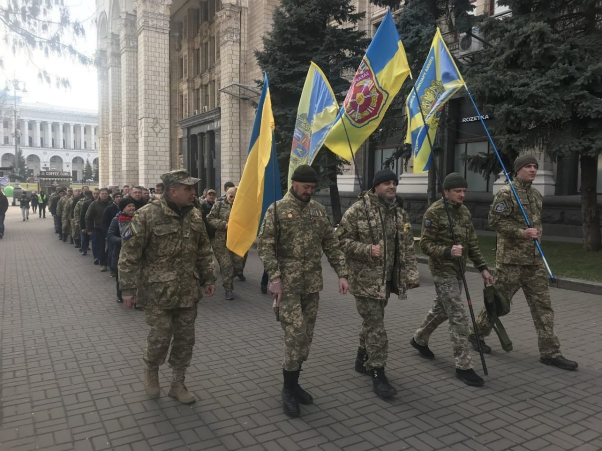 На вихідних біля Київської міської держадміністрації збиралися ветерани 128-ї гірсько-штурмової бригади та інших підрозділів, що брали участь у запеклих боях під Дебальцевим у лютому 2015 року.