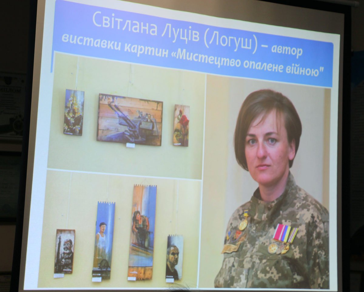 У Культурно-мистецькому і просвітницькому центрі Вінницького технічного університету презентували виставку робіт ветеранів батальйону «Айдар» Руслана Кашаюка та Світлани Логуш-Луців «Мистецтво, опалене війною». Виставка була організована за ініціативи Волонтерського центру імені Олександри Бурбело, що діє на базі вишу. Концертну програму до відкриття виставки підготували студенти факультету інформаційних технологій, які читали вірші та співали пісні, присвячені Україні та її захисникам.