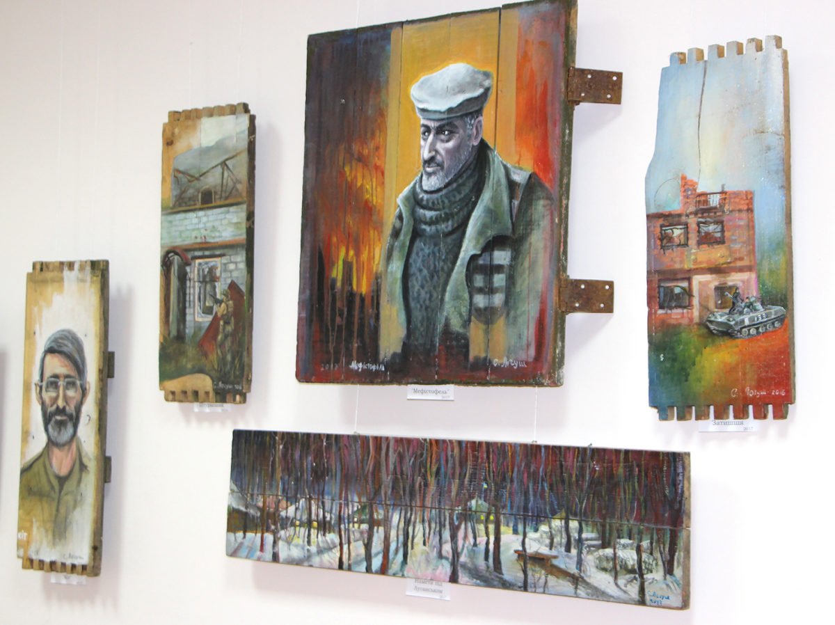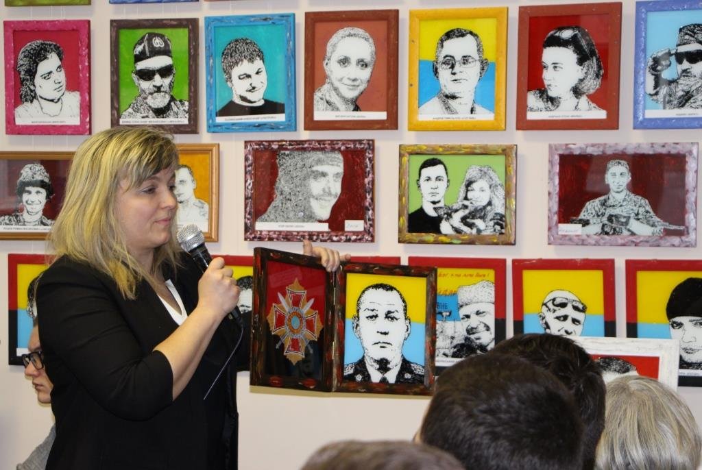 Також у експозиції виставки представлено цикл картин тернопільської художниці, волонтерки, бійця «Айдару» Світлани Логуш-Луців.