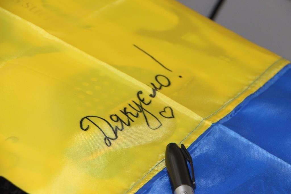 Наприкінці заходу всі бажаючі мали змогу написати побажання бійцям, які захищають Україну на сході. Прапор зі словами підтримки скоро вирушить на передову завдяки Волонтерському центру.