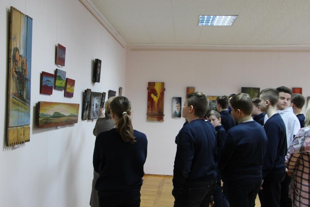 – Унікальність робіт Світлани полягає в тому, що вони виконані на особливому полотні – на фрагментах ящиків боєприпасів. Це дійсно вражає, особливо коли розумієш, що майстриня писала їх не на мирних пленерах, не в художній майстерні, де світло падає під правильним кутом, а саме на фронті, при світлі каганців, у зруйнованих будівлях, окопах, бліндажах і просто неба між боями, – поділилася враженнями із читачами АрміяInform Світлана Воловодюк, заступник директора Культурно-мистецького і просвітницького центру. – І це не просто портрети і сюжетні замальовки, на цих дошках зображено людські переживання, думки, мрії та сподівання. І, що особливо важливо: на цих дошках задокументовано шмат нашої новітньої історії, яка має назву російсько-українська війна. Тому так важливо виставляти такі роботи у навчальних закладах, щоб наші студенти бачили війну не лише через екран гаджетів, а й через мистецтво.