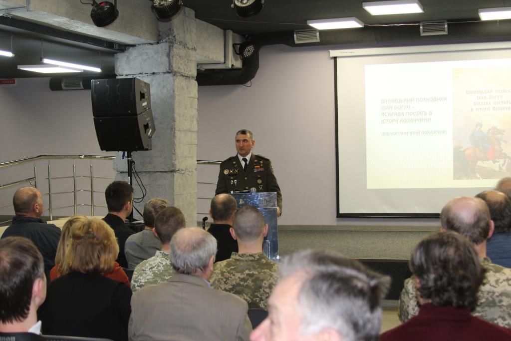 У березні 1651 року під час оборони Вінниці козаки на чолі з Іваном Богуном здобули блискучу перемогу над польським військом. Іван Богун укотре довів, що можливо перемагати ворога малими силами завдяки мужності й військовій майстерності. Щороку козаки Вінницького козацького полку ім. Івана Богуна відзначають цю доленосну перемогу. Не став винятком і 2020-й. Тож науковці, військові, представники громадськості та чимало небайдужих громадян зібралися в обласному молодіжному центрі «Квадрат», аби обговорити під час круглого столу постать легендарного козацького полководця і як вшанувати пам’ять Івана Богуна на Вінниччині.