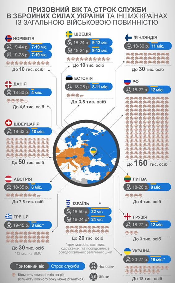У Німеччині призов зупинений із 2011 року, але Конституція ФРН передбачає, що чоловіків можуть призвати до армії з 18 років.