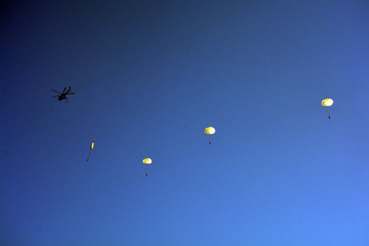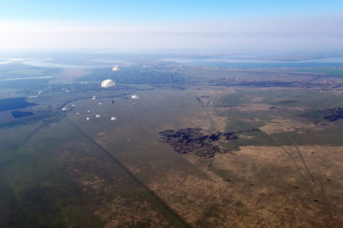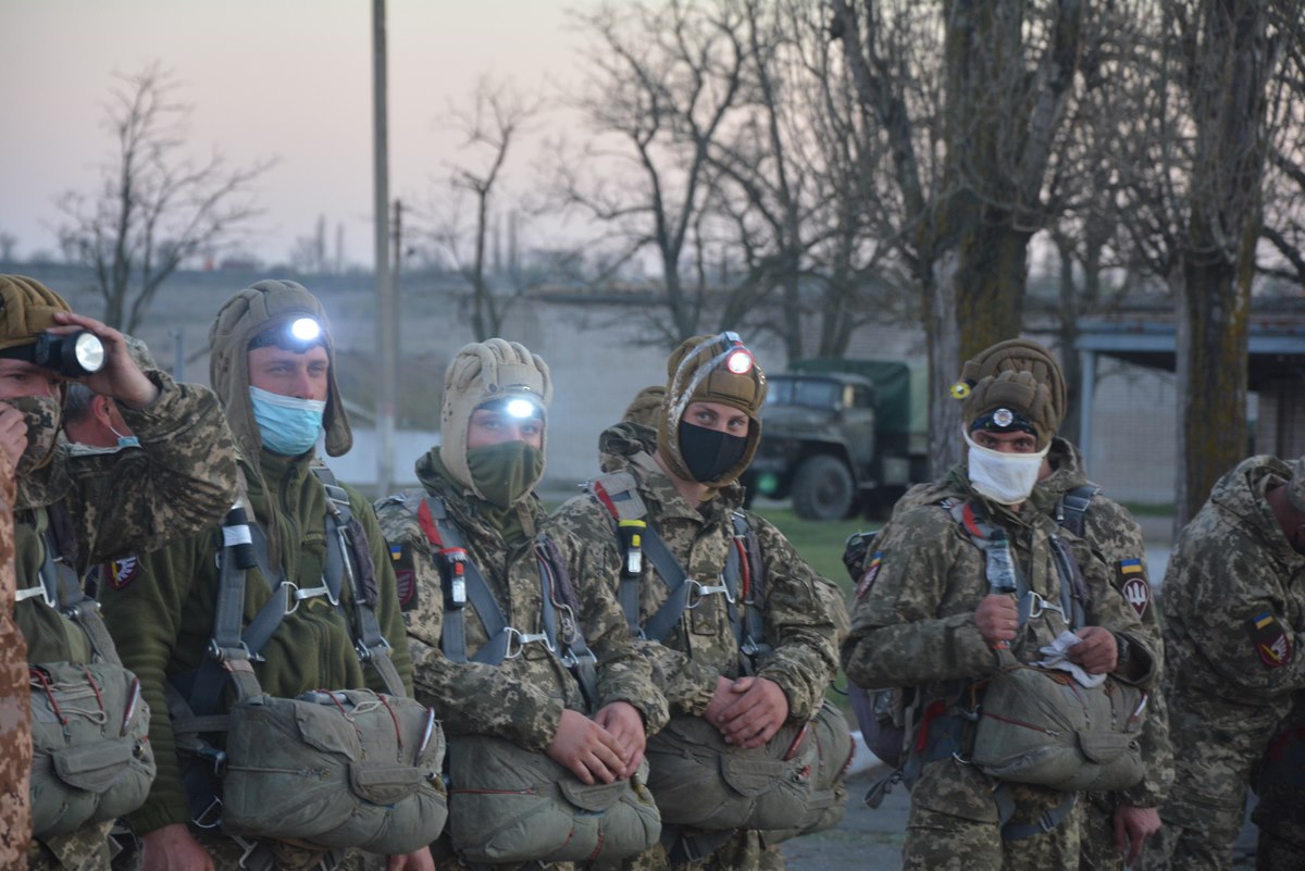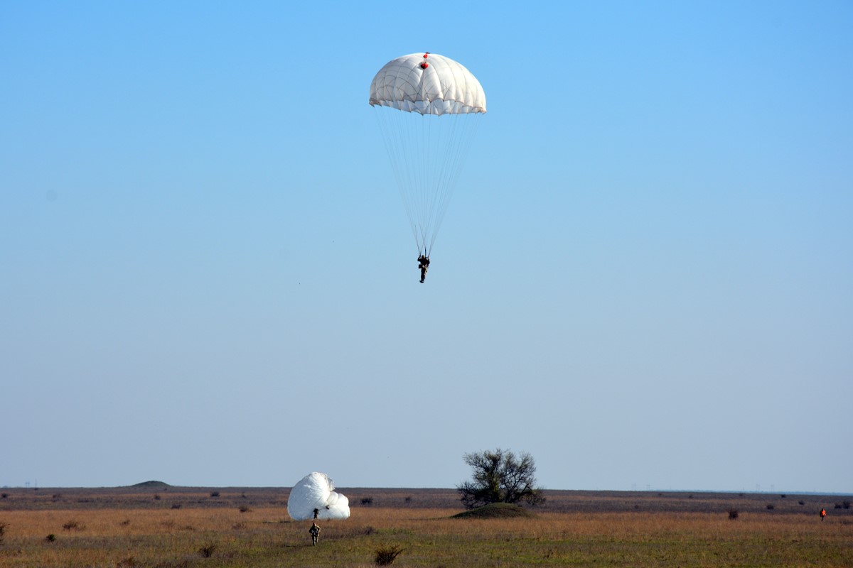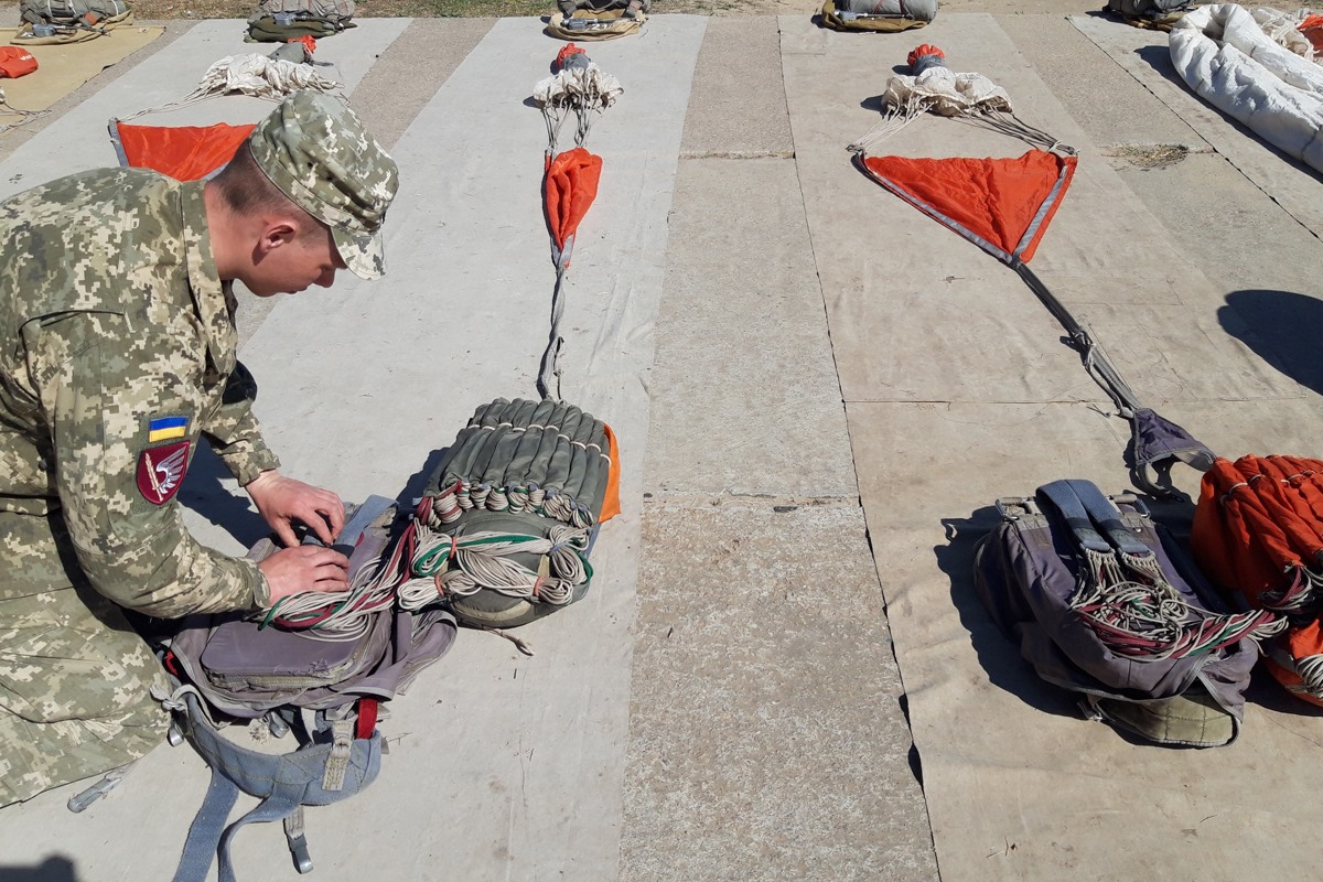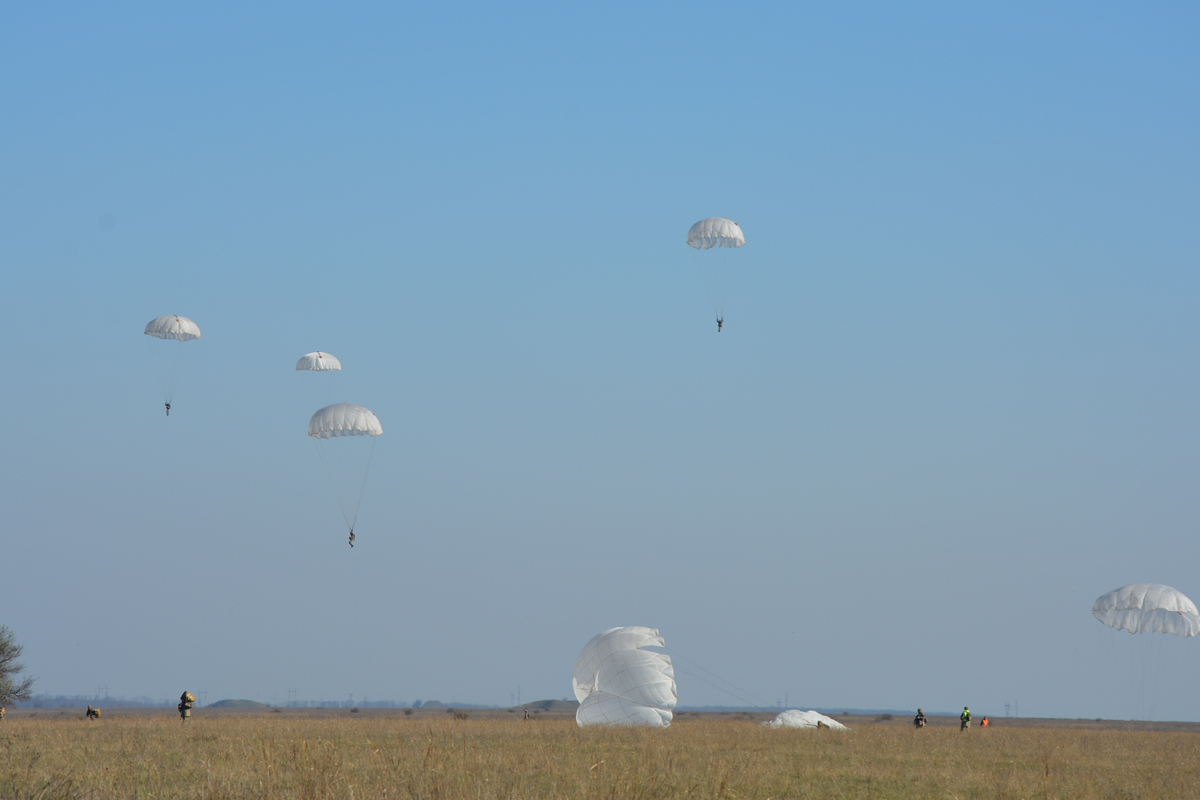 Десантники, які нещодавно розпочали проходження служби в частині, виконали свій перший ознайомчий парашутний стрибок з висоти 800 метрів без зброї, більш досвідчені та підготовлені військовослужбовці виконували програму стрибків з висоти 600 метрів зі зброєю та вантажним контейнером ГК-30, маючи в ньому бронежилет, шолом і запас води.