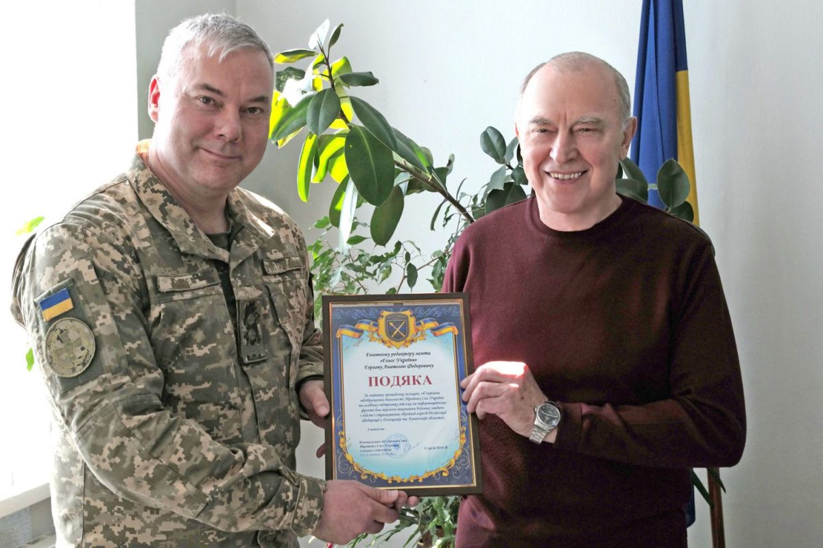 У газеті «Голос України» відбулася планова зустріч Командувача Об’єднаних сил ЗСУ генерал-лейтенанта Сергія Наєва та головного редактора видання Анатолія Горлова.