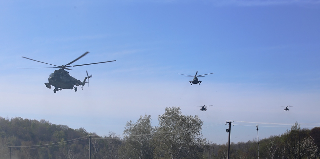 Довершили вогневе ураження ворога на відстані екіпажі вертольотів Мі-8. Пара транспортно-бойових вертольотів зі складу армійської авіації Сухопутних військ завдала удару по ворожому розташуванню некерованими ракетами.