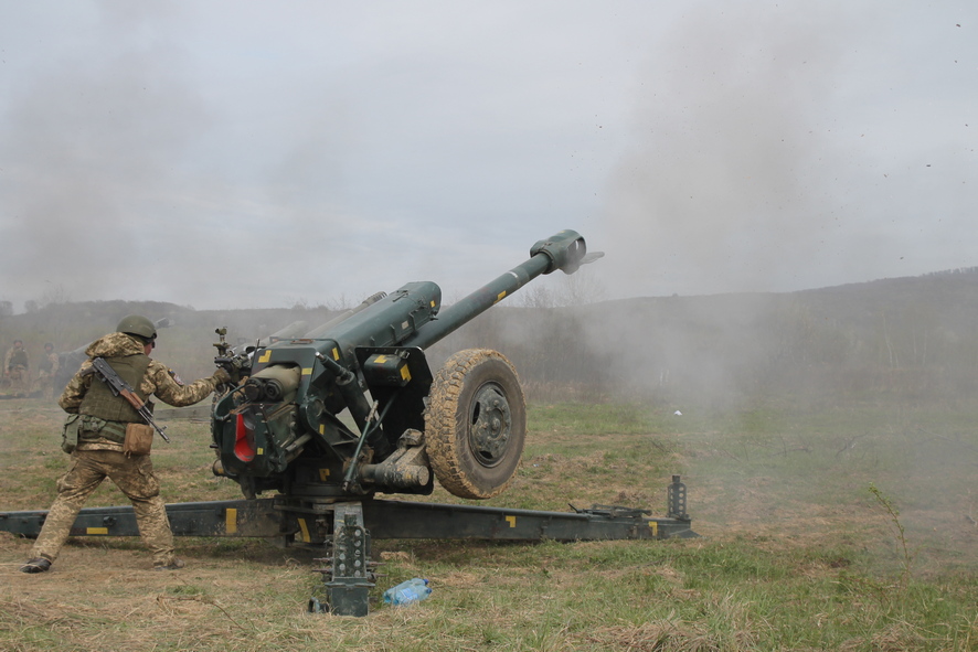 Дії тактичної групи десантників підтримувались артилеристами, які залпами з гаубиць Д-30 нанесли вогневе ураження противнику.