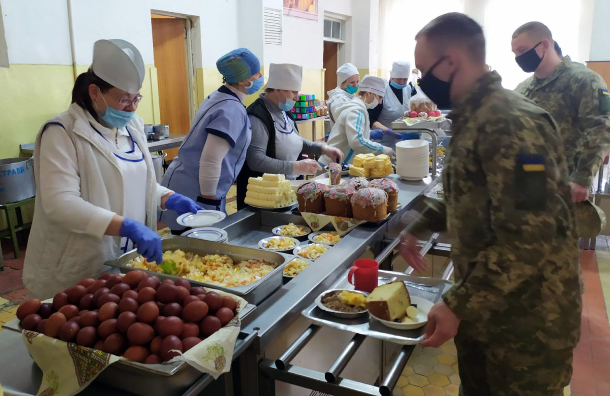 Військовослужбовці Харківського та Чугуївського гарнізонів під час святкового сніданку за християнським обрядом скуштували смачні паски та привітали один одного зі Світлим Христовим Воскресінням.