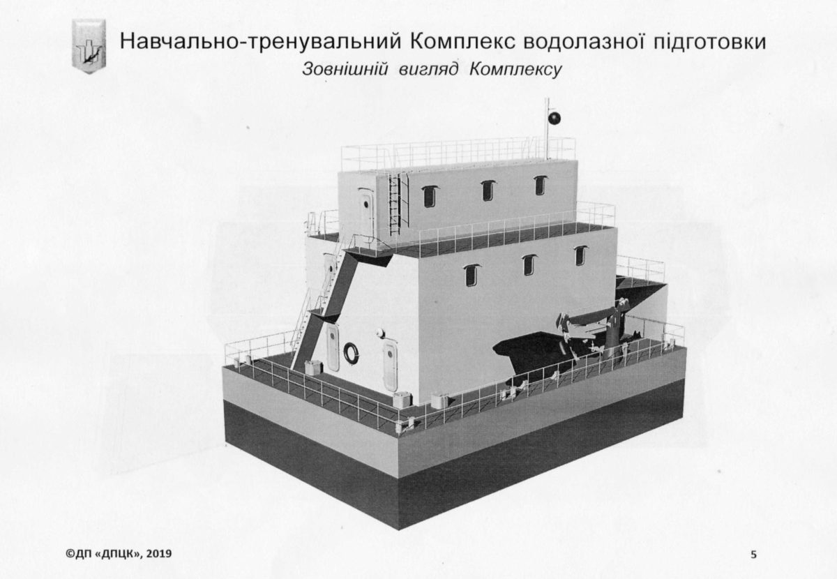 Передбачається, що водолазний комплекс буде сформований в єдине ціле і складений із залізобетонного понтону та металевої конструкції надбудови. Далі сама структура надбудови складатиметься в єдине ціле з модулів, виконаних з п’яти 40-футових і чотирьох 20-футових стандартних морських вантажних контейнерів ISO типу.
