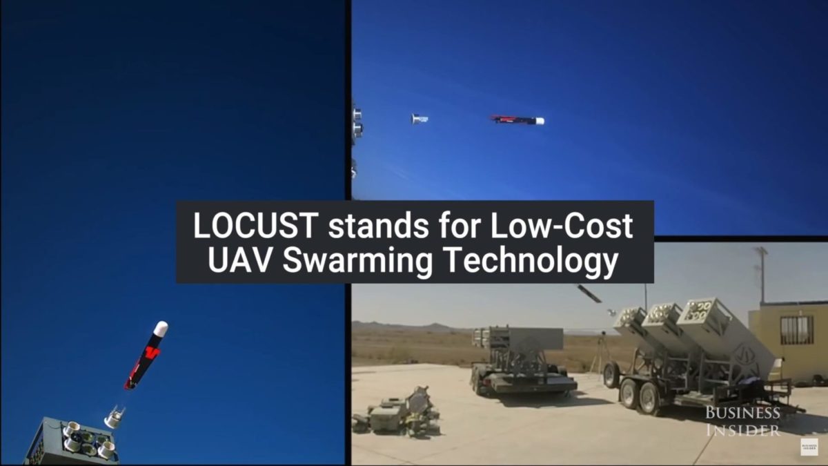 Ще один цікавий проєкт із ройового застосування БПЛА належить ВМС США. Це відносно малобюджетна програма Low-Cost UAV Swarming Technology або скорочено LOCUST (з англ. «Сарана»). Створений для цієї програми дрон-камікадзе Coyote від Raytheon Technologies – це малогабаритний літальний апарат зі штовхаючим гвинтом та парою складних крил. Після запуску зі спеціальних пускових установок дрони діють як одне ціле. Рій атакує ворожу техніку значно ефективніше, ніж при використанні ракет. Навіть якщо більшість дронів буде знищено на підльоті до цілі, апарати що лишилися, автоматично виберуть вразливі місця об’єкта і атакують їх.