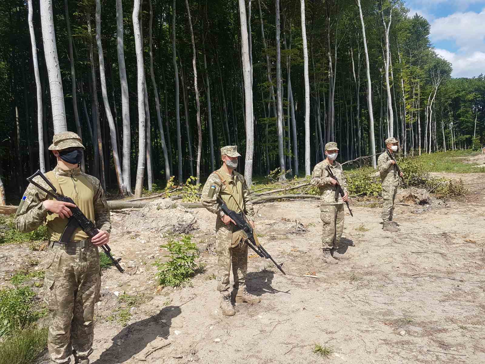 – Сьогоднішнє заняття з розвідувальної підготовки на тему «Переміщення по території, яку контролює противник» ми, власне, проводимо у складі штатних відділень курсантів одного курсу. Тобто з військовослужбовцями одного підрозділу, які проживають у спільному казарменому приміщенні. Це зумовлено передусім заходами з протидії проникненню у військовий колектив коронавірусної інфекції. Враховуючи це, а також той факт, що заняття проводять у закритій лісовій місцевості, і специфіку підготовки розвідгруп, зокрема безшумне подолання ділянки з відповідними командами лише мовою жестів, шепотом, мімікою та сигналів з використанням зброї – курсантам було дозволено скинути свої захисні маски, – розповів начальник кафедри тактико-спеціальних дисциплін факультету бойового застосування військ полковник Ігор Польцев.