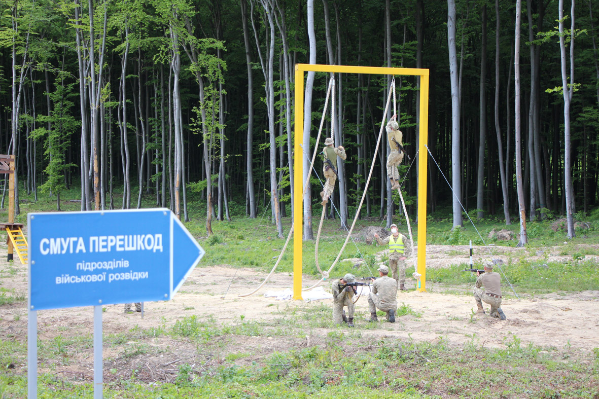 Іспит для піхотинців проходив саме на тій унікальній, найдовшій і одній з найскладніших у східній та центральній Європі «Смузі перешкод підрозділів військової розвідки», яку лише торік побудували в Національній академії спеціально для підпорядкованого Навчального центру розвідки. Тобто для підготовки фахових військових розвідників для Збройних Сил України. Про неї АрміяInform уже розповідала.