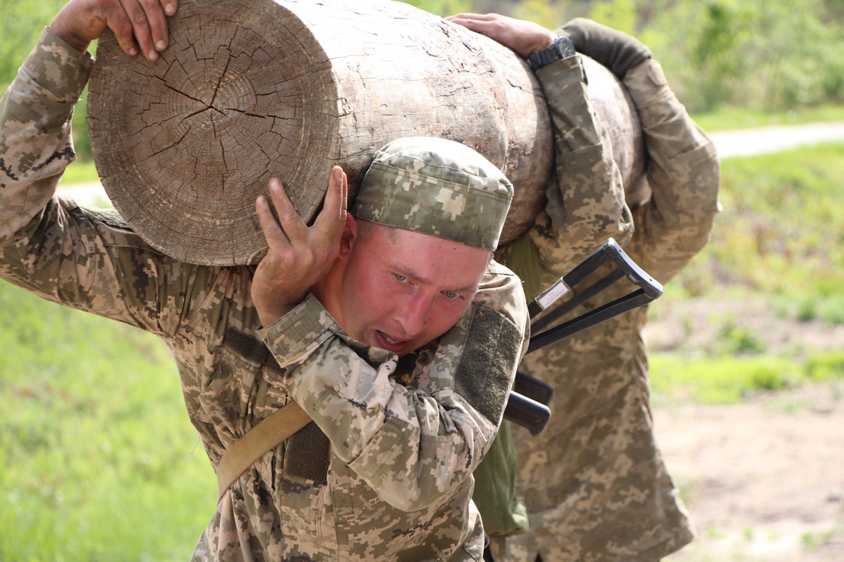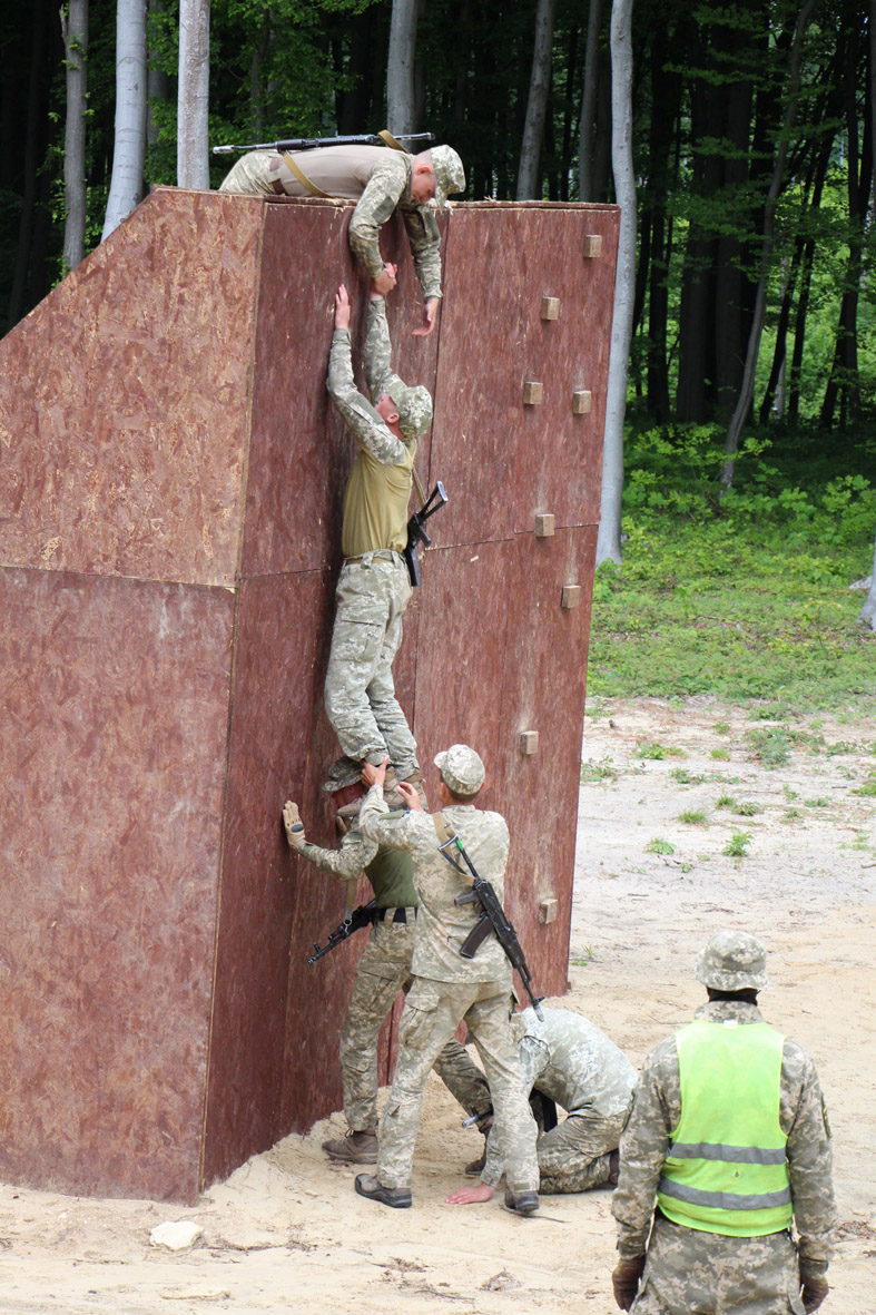 Нагадаю, завдовжки 1200 метрів, вона має 26 різних перепон, які не повторюються. Частина з них «заточена» на колективне подолання, що передбачає взаємодопомогу військовослужбовців, як, до прикладу, елемент «Стіна». Ця перепона заввишки два з половиною середні людські зрости, причому без жодних виступів і засіків, і щоб її подолати, потрібні майже акробатичні здібності у щонайменше трьох чоловіків. Є тут перепони, які сягають 6 метрів у висоту, а є тунелі, які занурюють курсантів під землю. Смуга надзвичайно різнопланова.